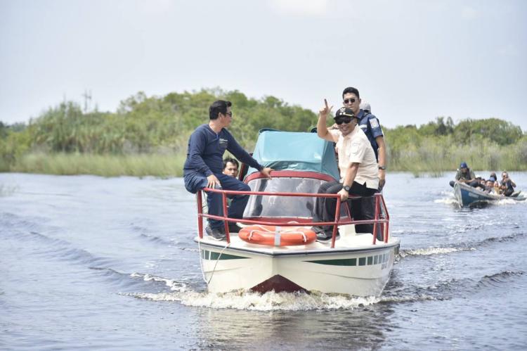 Wabup Bagus Santoso Serahkan Speedboat Ambulance Dusun Terisolir Bagan Benio