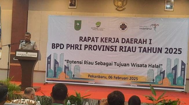 Pekanbaru, Satuju.com - Pembukaan Rapat Kerja Daerah I (Rakerda I) Badan Pimpinan Daerah Perhimpunan Hotel dan Restoran Indonesia (BPD PHRI) Provinsi Riau Tahun 2025, yang dilaksanakan di Hotel Angkasa Garden Jalan Setiabudi sepanjang Penjabat Walikota Pekanbaru, Roni Rakhmat, didampingi Kepala Dinas Kebudayaan dan Pariwisata (Disbudpar) Pekanbaru, Kamis (6/2/2025) pagi.