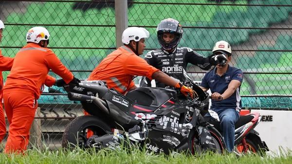 Sang pembalap andalan sekaligus juara dunia saat ini, Jorge Martin, mengalami kecelakaan dua kali di mana yang kedua terjadi cukup horor karena Martin mengalami highside dan terlempar dari motor RS-GP tunggangannya.