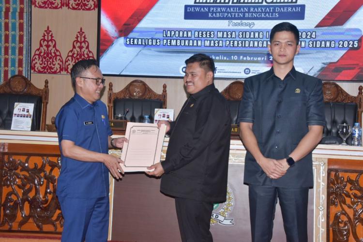 Bengkalis, Satuju.com - Laporan reses masa sidang I tahun 2024 secara simbolis diterima Bupati Bengkalis melalui Sekretaris Daerah Ersan Saputra TH.