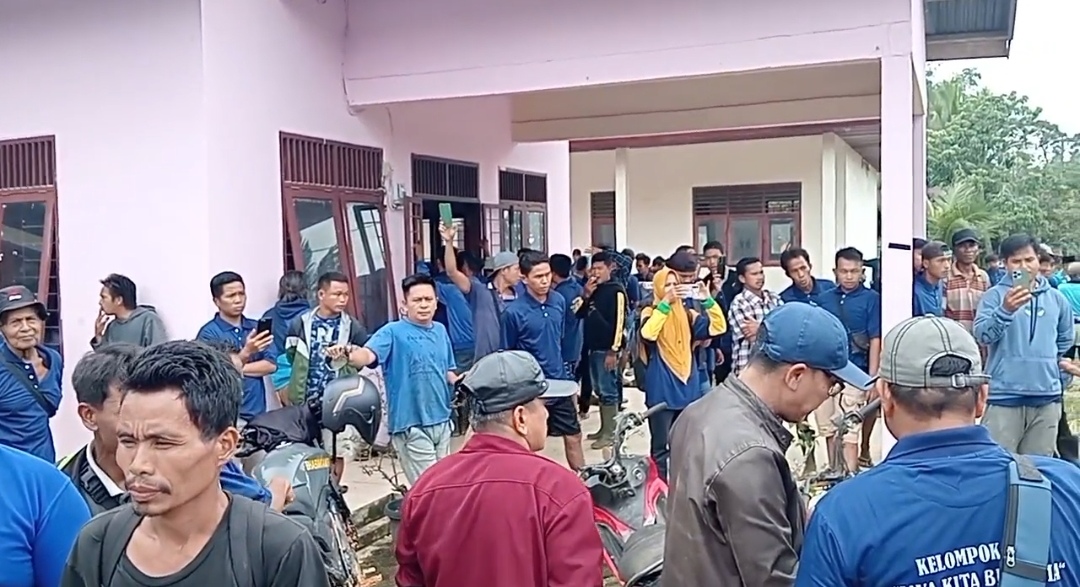 Rakit Kulim (Inhu/Riau), Satuju.com - Puluhan warga Desa Talang Suka Maju dan Talang Sungai Limau, Kecamatan Rakit Kulim, Kabupaten Indragiri Hulu (Inhu), menggelar aksi di Kantor Desa Talang Suka Maju pada Selasa (25/2), yang sebelumnya di agendakan di areal kebun sawit PT. Perkebunan INECDA.