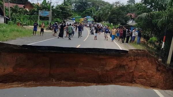 Kepala Pelaksana Badan Penanggulangan Bencana Daerah (BPBD) Kabupaten Dharmasraya, Eldison, mengumumkan bahwa longsor mengakibatkan kerusakan jalan dengan lebar mencapai enam hingga sepuluh meter. Akibatnya, seluruh kendaraan, baik roda dua maupun roda empat, tidak dapat melintas di jalur utama tersebut.