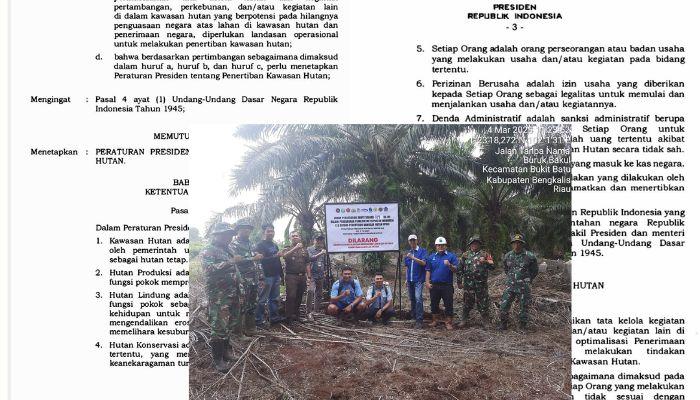 Bukit Batu, Satuju.com - Satuan Tugas (Satgas) Penertiban Kawasan Hutan (PKH) yang tergabung dalam Satgas Garuda telah melakukan operasi penertiban terhadap lahan perkebunan sawit milik PT Surya Dumai Agrindo (PT SDA) di Desa Buruk Bakul, Kecamatan Bukit Batu, Kabupaten Bengkalis, berdasarkan data GPS yang terdapat di dalam foto pemasangan plank, (04/03/2025) lalu.