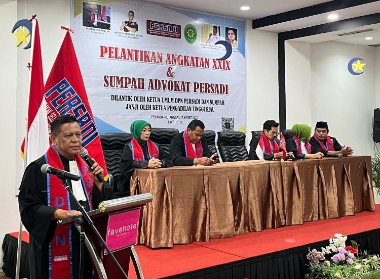 Penyumpahan Advokat Persadi berlangsung khidmat di ruang sidang lantai I Pengadilan Tinggi Riau. Pengambilan sumpah dipimpin langsung Ketua Pengadilan Tinggi Riau Asli Ginting, SH, MH disaksikan Hakim Tinggi Dedy Hermawan, SH, MH dan Sukri Sulumin, SH, MH.