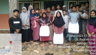 Kuantan Tengah, Satuju.com - Menjelang berbuka puasa RT 03 membagikan Takjil kepada anak-anak Panti Asuhan Generasi Harapan Beringin Taluk Kuantan bertepatan di Jalan Raja Ali Haji Beringin Taluk. Kegiatan ini di pimpin langsung oleh RT 03 Syafriadi BS bertepatan di Dusun Tobek Panjang RT 03 Koto Taluk Kuantan.