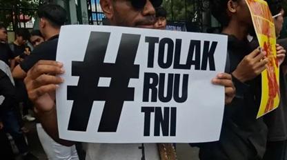 UU TNI telah disahkan dalam rapat paripurna DPR, Kamis (20/3). Gelombang penolakan UU TNI masih terus bergaung hingga hari ini. Masyarakat sipil mengkritik aturan yang dianggap mengembalikan dwifungsi angkatan bersenjata.