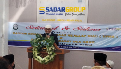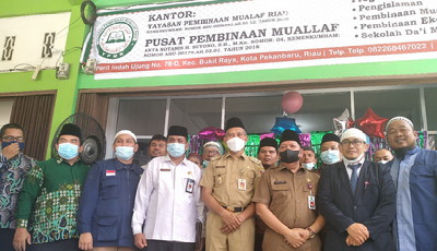 Pekanbaru, Satuju.com - Gubernur Riau Melalui Biro Administrasi Kesejahteraan Rakyat Zulkifli Syukur, S.Ag, Ma, M.Si meresmikan kantor Yayasan Pembinaan Mualaf Riau (YPMR) Sekaligus Kantor Travel Haji PT. Sahabat Dua Arah di jalan parit Indah Ujung Nomor 78 D Kecamatan Bukuit Raya Kota Pekanbaru, Selasa (9/11/21).