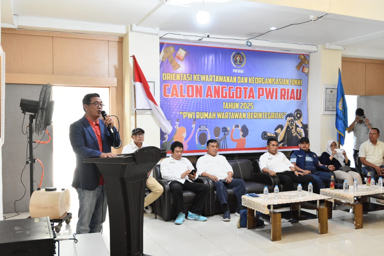 Pekanbaru, Satuju.com - Ketua Persatuan Wartawan Indonesia (PWI) Riau, Raja Isyam Azwar secara resmi membuka Agenda Orientasi Kewartawanan dan Keorganisasian (OKK) Calon Anggota PWI Riau Tahun 2025 yang diselenggarakan di Gedung PWI Riau, Ahad (27/04/2025).