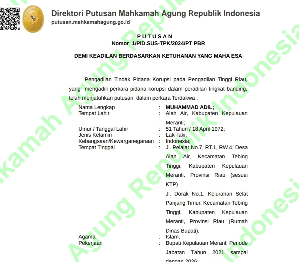 Ket.poto: Rekaman tangkapan layar hasil mantan Bupati Meranti, Muhammad Adil.