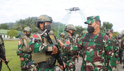 Singkawang, Satuju.com - Minggu (14/11/21), Panglima Kodam XII/Tanjungpura, Mayjen TNI Sulaiman Agusto, S.I.P., M.M., melepas Kontingen Latihan Bersama (Latma) Kekar Malindo-44AB Tahun 2021 antara TNI AD dengan Angkatan Darat Malaysia, bertempat di Lapangan Apel Mayonif Raider 641/Beruang.