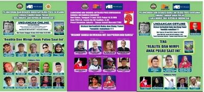 Sedangkan diskusi secara langsung (offline) akan dilaksanakan pada jumat tanggal 20 Juni 2025 mulai pukul 14.15 WIB di Aula PDS HB.Jassin, Lantai IV, Gedung Ali Sadikin, Pusat Kesenian Jakarta (PKJ) di Taman Ismail Marzuki (TIM) Jakarta dengan tema "Realita dan Mimpi Anak Pulau Saat Ini".