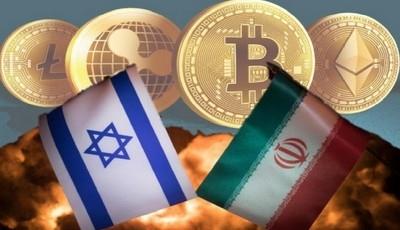Ilustrasi background Kripto dan bendera Israel dan Iran.