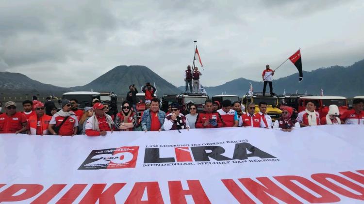 Lima Deklarasi Maklumat Berantas Korupsi dan Hukum Mati Koruptor Kakap dibacakan Sekjen LSM LIRA, Adam Irham dan Gubernur LSM LIRA Jawa Timur, Samsudin di Puncak Bromo, Probolinggo, Jawa Timur