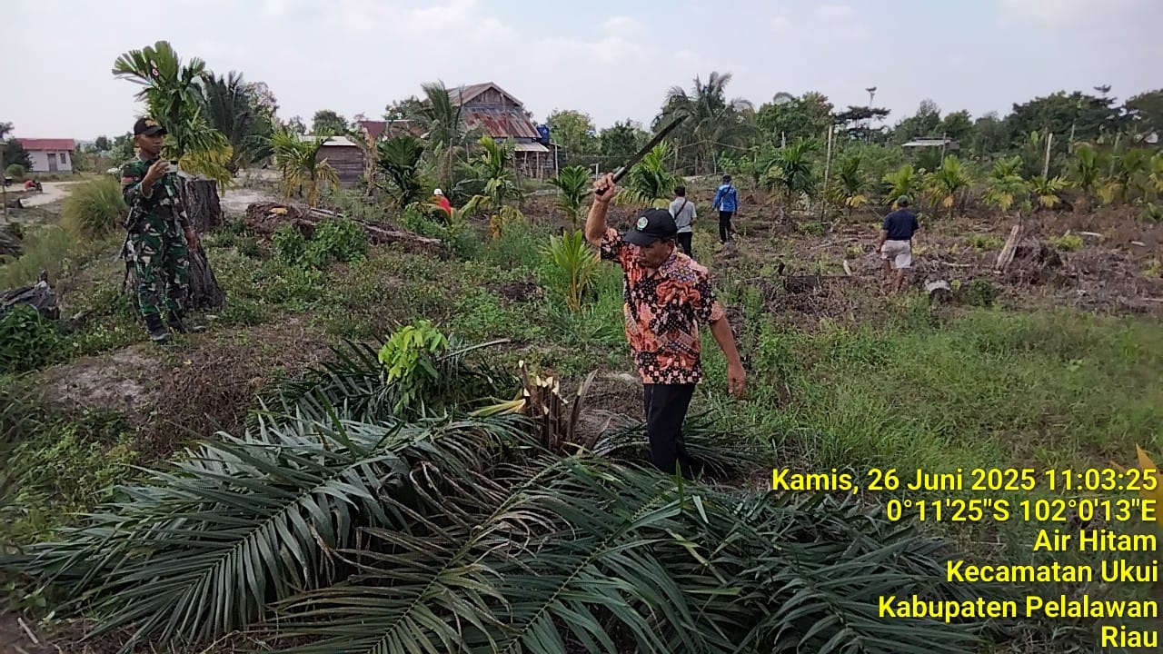 Pelalawan (Riau), Satuju.com - Kepala Desa (Kades) Air Hitam Kecamatan Ukui Tensi Sitorus bersama pemilik kebun dan didampingi Satgas PKH lakukan pemusnahan pokok sawit yang berumur dibawah 5 tahun. Di Kawasan TNTN Desa Air Hitam. Seluas 10 Hektare lahan sawit yang berumur dibawah 5 tahun dipimpin langsung oleh Kepala Desa Air Hitam beserta perangkat Desa dan Pemilik Kebun. Kamis (26/6/2025).