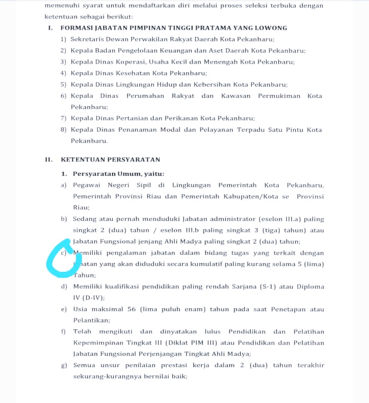 Sebagaimana diketahui, ada delapan OPD yang di asessment, yakni Dinas Lingkungan Hidup dan Kebersihan (DLHK), Sekretaris DPRD Kota Pekanbaru, Dinas Perkim, Dinas PMTSP. Dinas Kesehatan, BPKAD, Dinas Koperasi dan UMKM, Dinas Pertanian dan Perikanan Kota Pekanbaru, saat ini kedelapan OPD itu dijabat oleh Plt, harapannya benar-benar orang yang berpengalaman yang dimenangkan nantinya.