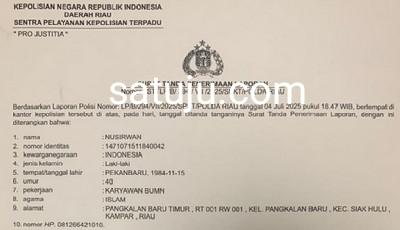 Nomor: STTLP/B/294/VII/2025/SPKT/POLDARIAU.(Poto/ist)