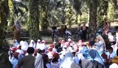 Pekanbaru, Satuju.com - Dugaan Framing anak Sekolah Dasar (SD) yang belajar dibawah pohon sawit diduga dalam kawasan Taman Nasional Tesso Nilo atau TNTN, Pelalawan viral di media sosial.