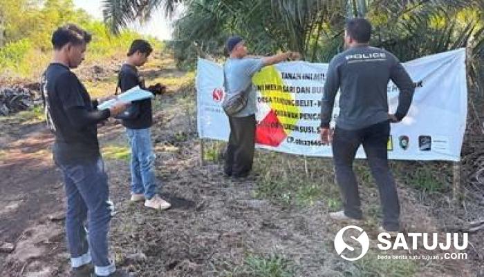 Tim Polres Bengkalis turun ke lapangan, menindak lanjuti laporan dari Koperasi BBDM terhadap dugaan penyerobotan oleh oknum kelompok Tani Desa Tanjung Belit.(Poto/ist).