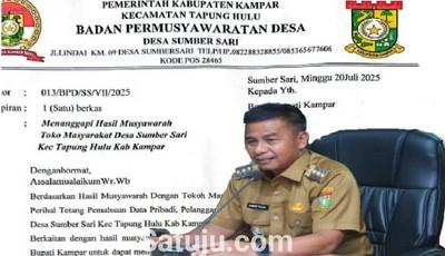 Ketua Badan Permusyawaratan Desa (BPD) Sumber Sari, Jalaluddin Al Junaidi, membenarkan adanya hasil rapat pleno tersebut dan menyatakan bahwa izin telah merekomendasikan surat masyarakat disampaikan ke Kantor Camat Tapung Hulu untuk diteruskan ke Dinas Pemberdayaan Masyarakat dan Desa (PMD) Kabupaten Kampar.