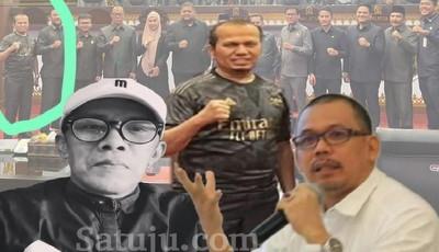 Pengamat Kebijakan Publik Rawa El Amady, (kanan) dan Pengamat Kota Pekanbaru, Masril Ardi serta background Poto bersama 14 anggota dewan ikut rapat paripurna malam kemerdekaan.(Poto/ist/Satuju.com).