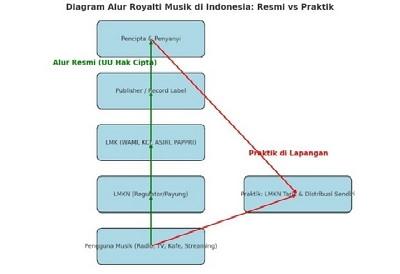 Diagram alur Royalti Musik di Indonesia: Resmi vs Praktik.(Poto/ist).