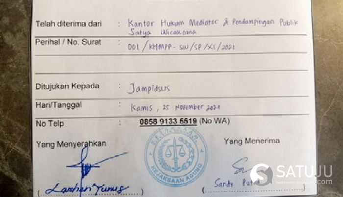 Surat Resmi Laporan Pengaduan Masyarakat itu langsung diterima oleh Jaksa yang piket di Pos Pelayanan Hukum dan Penerimaan Pengaduan Masyarakat Pelayanan Informasi Publik KEJAGUNG RI, atas nama Sandy Putra A SH MH.