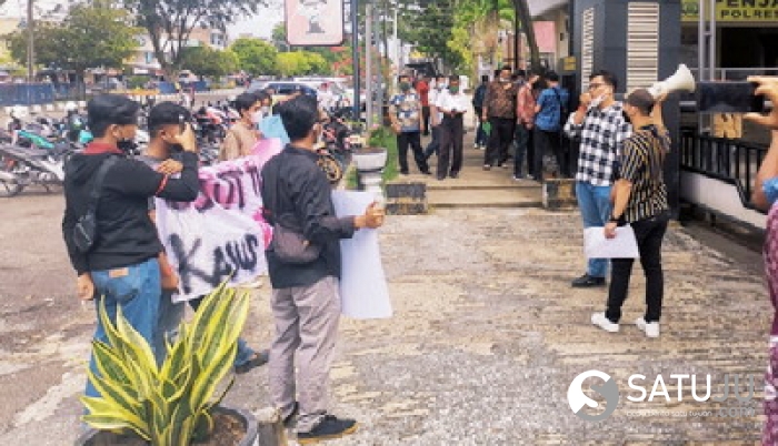 Dumai, Satuju.com - Sejumlah mahasiswa yang menamakan diri mereka Gerakan Mahasiswa Dumai (GMD) mendatangi kantor Polres Kota Dumai, Jumat, (26/11/21).