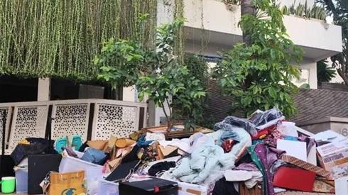 Penampakan Rumah Sri Mulyani pasca dijarah massa, tampak lukisan, AC, kursi hingga dispenser air berserakan di depan rumahnya.