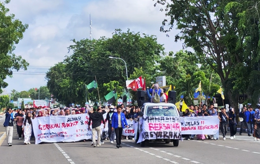 Bengkalis, Satuju.com - Aliansi Gerakan Rakyat dan Mahasiswa Kabupaten Bengkalis (GERAM-B) menggelar aksi unjuk rasa besar-besaran pada Rabu, 3 September 2025. Aksi ini dimulai pukul 09.00 WIB dengan titik kumpul di Lapangan Tugu Bengkalis, lalu bergerak menuju DPRD Kabupaten Bengkalis.