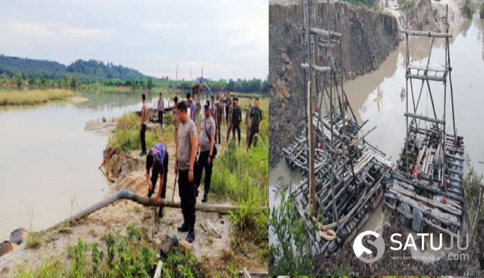 KOBA (BANGKA TENGAH), Satuju.com - Menindaklanjuti laporan masyarakat adanya aktifitas Tambang Inkonvesksional (TI) jenis rajuk wilayah Pungguk, Kenari, Merbuk serta Jongkong 12 Kecamatan Koba, Tim Gabungan (Timgab) Polres Bangka Tengah (Bateng) bersama Satpolpp Bateng melakukan razia dilokasi yang dimaksud. Hasil razia tersebut, Timgab berhasil mengamankan peralatan TI rajuk tanpa pemilik.