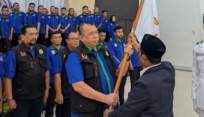 Prosesi pengukuhan dilakukan langsung oleh Plt Ketua Umum KONI Aceh, Tgk Anwar Ramli, yang menyerahkan bendera KONI sebagai tanda dimulainya amanah baru. Kamis, (18/9/2025).(Poto/ist).