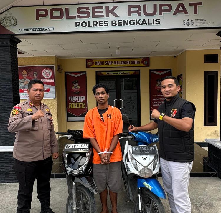Kapolres Bengkalis, AKBP Budi Setiawan SIK MIK, melalui Kapolsek Rupat AKP Faisal SH, menjelaskan bahwa tersangka Sofyan (28) ditangkap oleh Tim Reskrim Polsek Rupat di rumah orangtuanya. Sofyan terbukti mengambil sepeda motor Honda Beat Nopol BM 3679 DAS milik Roah (61), warga Jalan A.Yani RT002 RW001, Desa Parit Kebumen, Kecamatan Rupat.