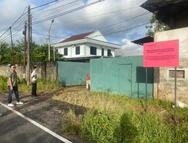 Pantauan wartawan di lokasi menunjukkan aparat Kejaksaan Negeri (Kejari) Bangka Tengah bersama tim Jampidsus memasang *dua plang sitaan* di depan gudang tersebut.