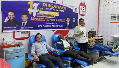 Ketua DPD NasDem Aceh Utara, Zubir HT, menyampaikan bahwa aksi donor darah ini merupakan bagian dari rasa syukur atas perjalanan Partai NasDem yang telah genap berusia 14 tahun, sekaligus wujud kontribusi nyata kader di daerah bagi masyarakat.