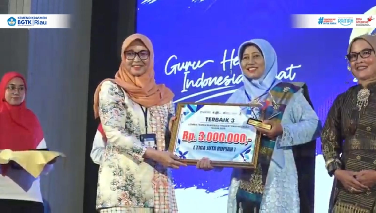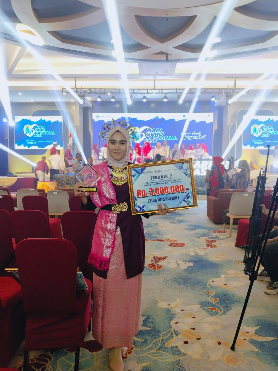 Fauzan Azimah, S.Pd, (Guru SMPN 6 Bantan) meraih Juara 2 kategori Guru Transformatif SMP. Dan, Riska Sari (Guru SDN 3 Mandau) meraih Juara 3 kategori Pelopor Komunitas Belajar.