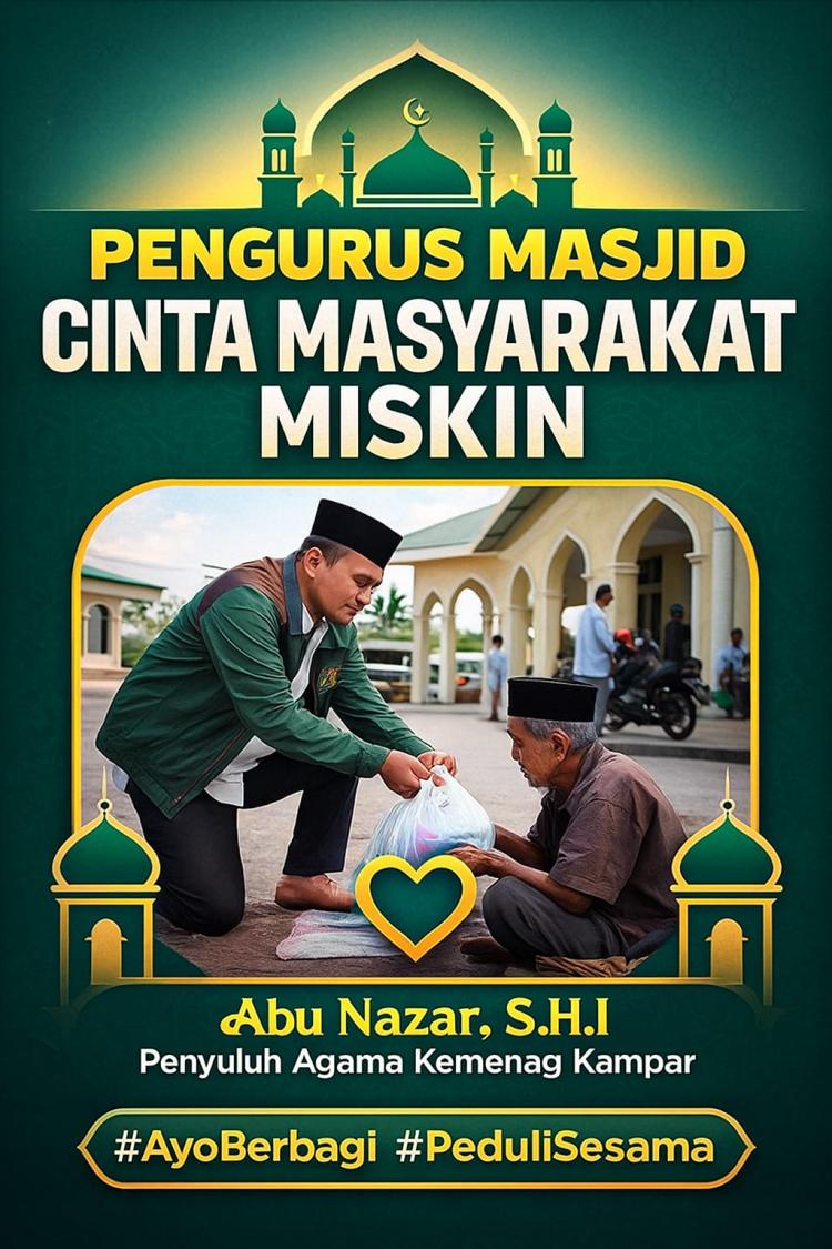 Kampar, Satuju.com - Penyuluh Agama Islam Kemenag Kampar, Abu Nazar, S.H.I, kembali menggaungkan gerakan kepedulian sosial di lingkungan masjid. Ia mengajak seluruh pengurus masjid untuk lebih aktif memperhatikan masyarakat kurang mampu di sekitar mereka.