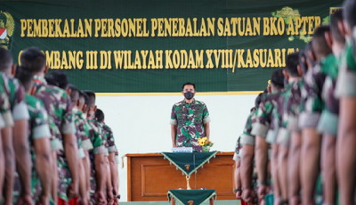 Sorong, (Papua Barat) Satuju.com - Kasdam XVIII/Kasuari, Brigjen TNI Djoko Andoko membuka acara pembekalan kepada personel penebalan Satuan BKO Apter Gelombang III di wilayah Kodam XVIII/Kasuari TA. 2021, di Aula Gedung Serba Guna Yonif RK 762/VYS, Jl. Basuki Rahmat, Km 11, Kelurahan Klasaman, Distrik Klaurung, Sorong, Papua Barat, Rabu (15/12/2021).