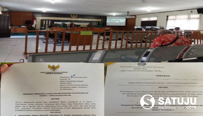 Ket. Poto : Jawaban Termohon II (KPK) Dalam Perkara Praperadilan Nomor : 18/Pid.Pra/2021/PN.Pbr. Sekretaris FORMASI RIAU Heri Kurnia, SE berada diruang sidang.