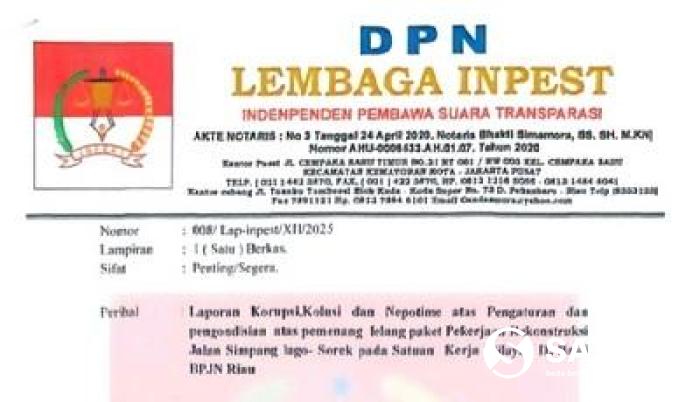 nomor Surat Nomor 088-Lap/INPEST/XII/2025.(poto/ist)
