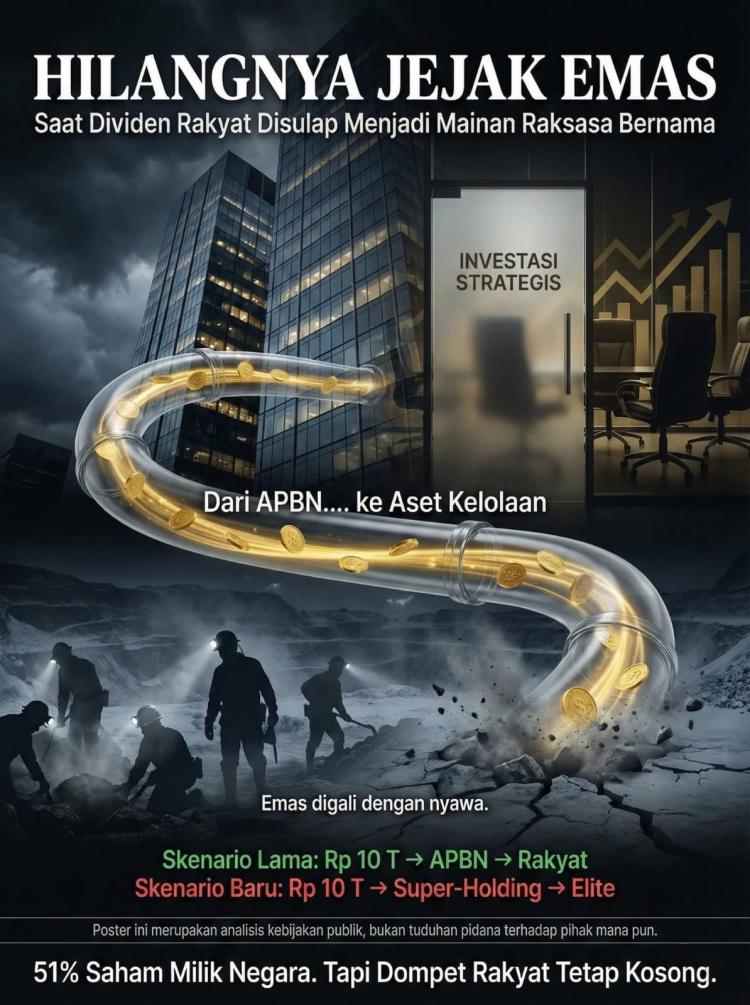 Ketika Freeport (via MIND ID) masuk ke bawah ketiak Danantara, kontrol publik resmi terputus. Laporan keuangan berpotensi sunyi, berlindung di balik tirai “rahasia dagang” dan “strategi investasi”.