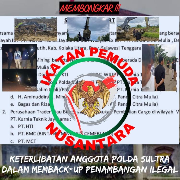 Jakarta, Satuju.com — Dewan Pimpinan Pusat (DPP) Ikatan Pemuda Nusantara (IPN) mendesak Markas Besar Kepolisian Republik Indonesia (Mabes Polri), Komisi Pemberantasan Korupsi (KPK), serta Kejaksaan Agung Republik Indonesia (Kejagung RI) untuk segera mengusut dan memeriksa dugaan keterlibatan oknum anggota Polda Sulawesi Tenggara (Sultra) dalam praktik pertambangan ilegal.