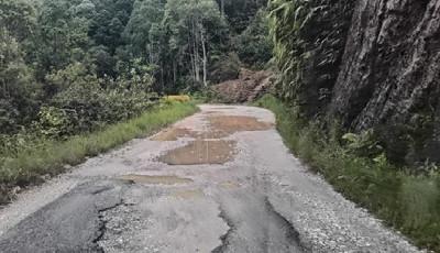 Dengan ruas jalan banyak yang rusak, berlobang dan aspalnya tergerus, berdasarkan pengamatan kami rusaknya jalan akibat aspal rusak oleh genagan air yang berasal dari perbukitan sekitanya disebabkan tidak adanya sistem drainase yang baik sehingga air langsung menggenangi jalan, sebagaimana di ketahui bahwa aspal sangat mudah rusak oleh genangan air.
