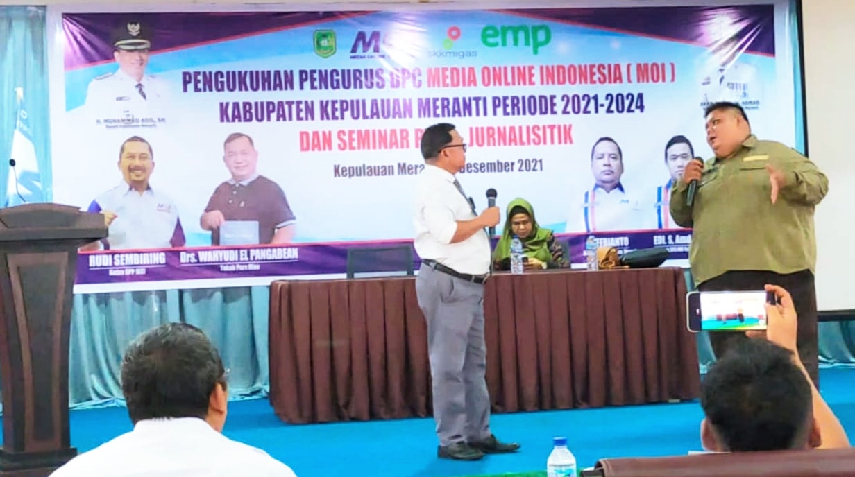 Seminar yang dibuka secara langsung oleh Bupati Kepulauan Meranti, H.Muhammad Adil, S.H., bersempena pengukuhan pengurus DPC Media Online Indonesia (MOI) Kabupaten Kepulauan Meranti oleh Ketua Umum DPP MOI, Rudi Sembiring.