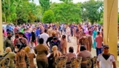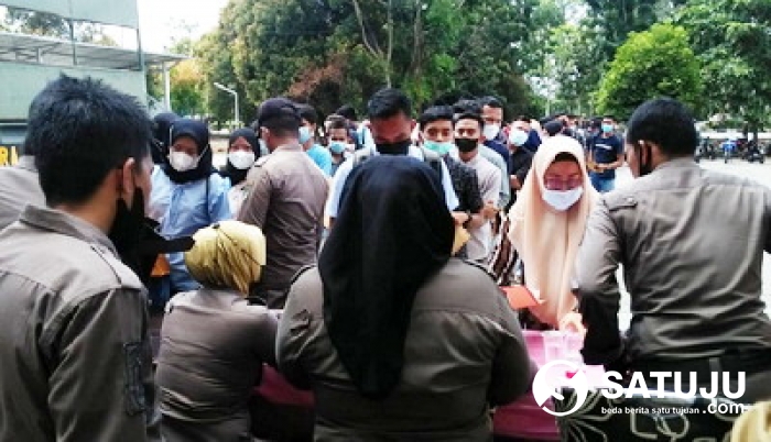 ROHIL, Satuju.com - Ratusan orang pencari kerja yang sudah melayangkan surat lamaran kerja di Kantor Satpol PP Kabupaten Rokan Hilir (Rohil) berbondong-bondong mendatangi kantor tersebut untuk melihat hasil kelulusan kelulusan pada Jumat, (17/12/2021) sore.