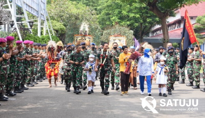 Jakarta, Satuju.com - 20 Desember 2021, Jalesveva Jayamahe --- Panglima TNI Jenderal TNI Andika Perkasa berkunjung ke markas prajurit pengawal samudra di Markas Komando Mako (Mako) Komando Armada (Kormada) I, Jalan Gunung Sahari No. 67 Jakarta Pusat. Kehadiran Panglima TNI didampingi Ketua Umum Dharma Pertiwi, Ny. Hetty Andika Perkasa, Senin (20/12).