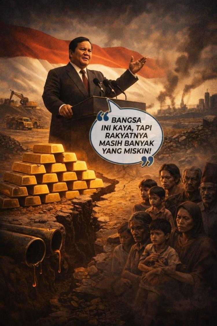 Satuju.com — Di balik podium dengan gestur tangan yang khas, Prabowo Subianto sering kali mengulang sebuah kalimat yang terdengar seperti mantra: "Bangsa ini kaya, tapi rakyatnya masih banyak yang miskin!"