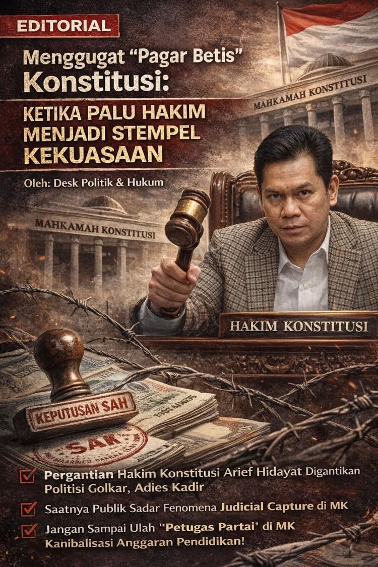 Satuju.com - Di tengah riuh rendah wacana publik, sebuah pergeseran tektonik terjadi di Mahkamah Konstitusi (MK)—senyap, namun dampaknya berpotensi meruntuhkan sisa-sisa independensi yudikatif kita. Pergantian Hakim Konstitusi dari Arief Hidayat, seorang akademisi hukum senior, kepada Adies Kadir, politisi Golkar, bukan sekadar rotasi jabatan biasa. Ini adalah sinyal merah bagi demokrasi Indonesia: sebuah fenomena yang oleh para analis disebut sebagai Judicial Capture atau penyanderaan lembaga peradilan.