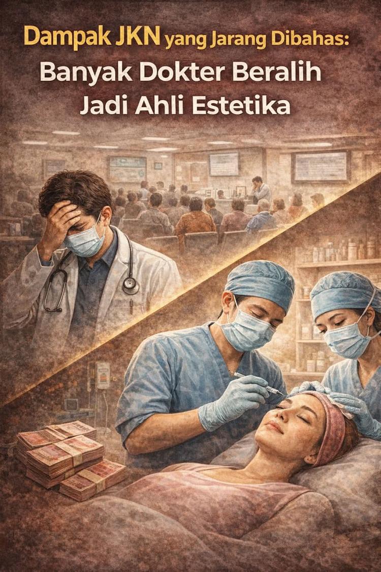 Banyak orang bertanya-tanya, kenapa sekarang klinik estetika tumbuh subur, sementara dokter umum dan spesialis di layanan kuratif makin kelelahan? Salah satu jawabannya adalah JKN. Ya, sistem yang berjasa besar memperluas akses layanan kesehatan ini juga membawa dampak ikutan yang sering tidak masuk diskusi publik.