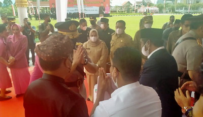 Pekanbaru, Satuju.com - Polda Riau menggelar serangkaian acara menyambut kedatangan Irjen Mohammad Iqbal, S.I.K., M.H pada Senin (3/1/2022). Acara dimulai sejak pagi dengan tradisi penyambutan adat tepuk tepung tawar kepada Kapolda Riau yang baru ini, ditemani langsung oleh Irjen Agung Setya Imam Effendi selaku kapolda sebelumnya. Acara berlangsung khidmat, diawali dengan parade berjalan kaki dari gerbang masuk menuju depan teras Markas Polda Riau, disambut barisan lengkap personel kepolisian di bagian kiri dan kanan.