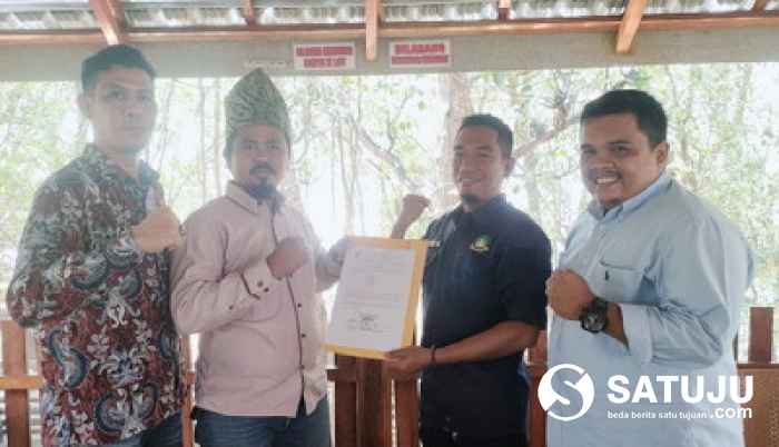 BENGKALIS , Satuju.com - Panglima / Ketua Dewan Pimpinan Daerah Laskar Melayu Riau (DPD - LMR) Kabupaten Bengkalis Kamarudin, SE.Sy didampingi Sekretaris Nanda Sonefil S.Sos, Selasa (4/1/2022), menyerahkan Surat Mandat bernomor 004/DPD/LMR/1/2022 tentang pembentukan kepengurusan Dewan Pimpinan Cabang (DPC) LMR Kecamatan Bukit Batu, kepada Erwin Syah Putra, S.Psi selaku ketua atau Temenggung, Darmayanto, A.Md sebagai Datuk Sekretaris dan Wawan Irnawan, SE sebagai Datuk Bendahara.